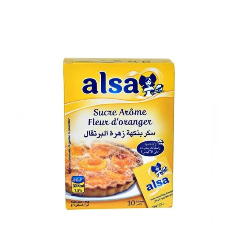 Découvrez Alsa Sucre Aromé Fleur d'Oranger 7.5g, parfait pour ajouter une touche parfumée à vos desserts. Commandez chez El Benna, votre grossiste alimentaire en France.