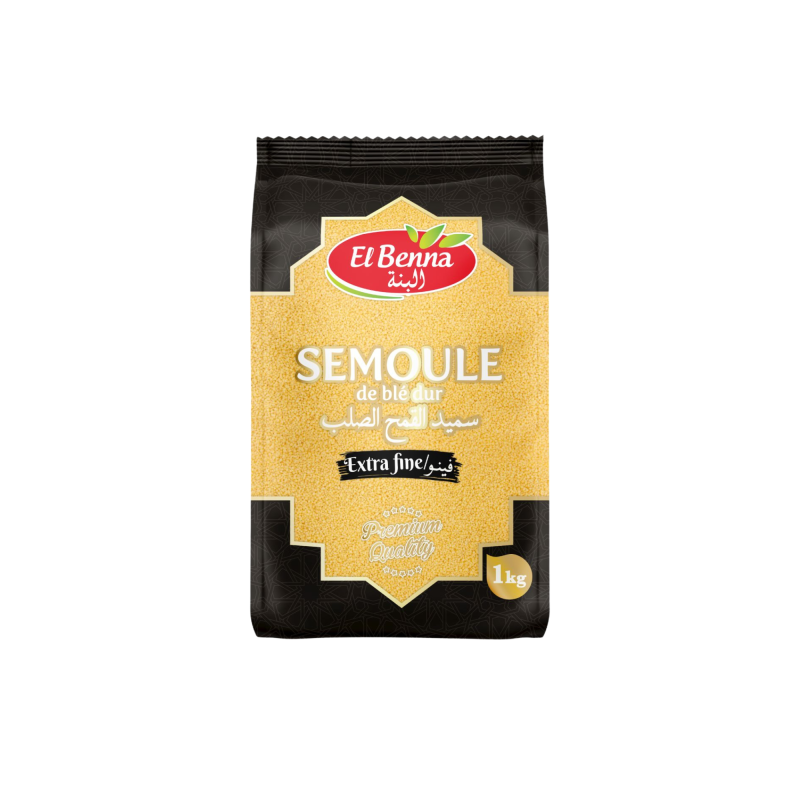 Découvrez la semoule extra fine 1KG EL BENNA. Commandez chez El Benna, votre grossiste de confiance.