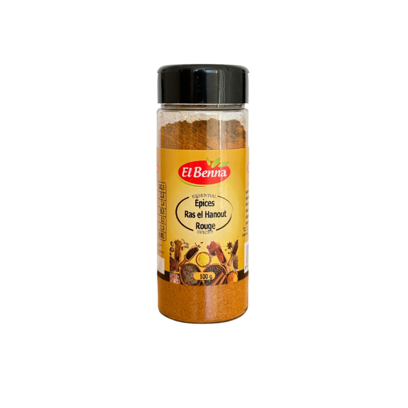 Découvrez le Ras El Hanout Rouge EL BENNA 100gr, parfait pour parfumer vos recettes. Commandez chez El Benna, votre grossiste alimentaire halal en France.