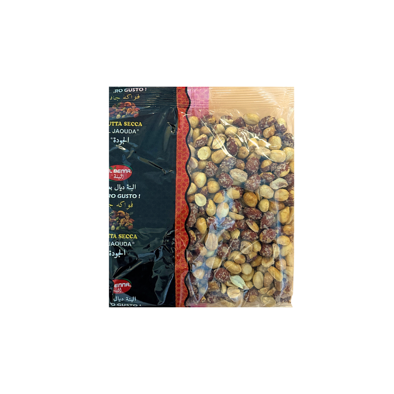 Dégustez les arachides grillées salées EL BENNA 400GR, une collation savoureuse. Commandez chez El Benna, votre grossiste de fruits secs.