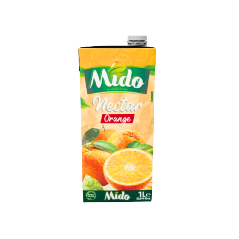 Découvrez Mido Orange 1L Brick, un jus d’orange rafraîchissant et vitaminé. Commandez chez El Benna, votre grossiste en boissons de jus de fruits en France.